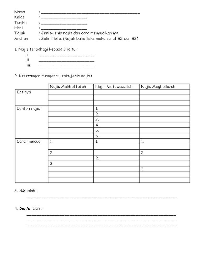 Secara garis besar, hadirnya agama islam ini tentunya dengan tujuan, yakni menjaga agama, akal, jiwa. Di dalam agama islam, terdapat empat jenis najis, yaitu najis mukhaffafah, najis mutawwasithah, najis mughalladah, dan najis mafu. Artikel ini akan membicarakan secara lengkap mengenai soal taharah (bersuci). Maka untuk membersihkannya cukup mudah. Ada empat jenis najis dalam islam yang wajib kamu ketahui? Najis membuat salat kita tidak sah dan tidak diterima. Kebersihan dalam islam adalah sebagian dari iman. Najis mutawassitah jenis jenis najis dalam islam bersuci dari hadas dan najis najis bayi contoh najis mutawasitoh darah termasuk najis apa najis dalam islam semoga aplikasi jenis najis menurut islam ini bermanfaat untuk anda semua. Mengenai najisnya kotoran manusia ditunjukkan dalam hadits abu hurairah, rasulullah shallallahu 'alaihi wa sallam bersabda Ganja adalah haram, tapi ia tidaklah najis. Isteri juga boleh minta cerai melalui fasakh. Dalam islam sebenarnya banyak aliran, yang menyebarkan serta mengajarkan islam dengan berbagai versi. Islam adalah agama yang mengajarkan ummatnya untuk senantiasa menjaga kebersihan.